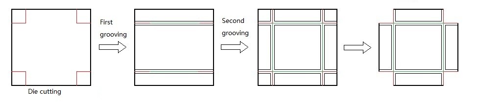 This machine is mainly used for making V type groove on cardboard which is a necessary machine for making rigid boxes. It can automatically groove two directions which make the work much simpler. (If the four corners of the cardboard are half die-cut, it can automatically remove the four corners of waste after grooving)